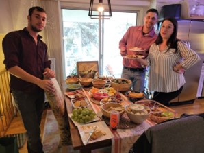 At winter supper warm between four walls,